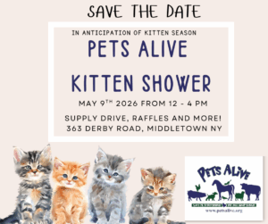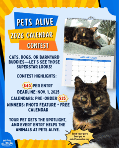 If you’d like to be part of our email list to receive alerts about upcoming events, email us at info@petsalive.org and we’ll add you to the list! (We’ll never sell or share your email information.)